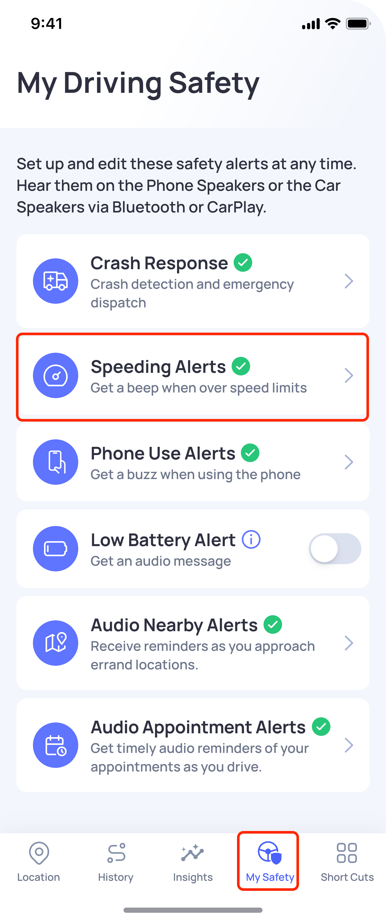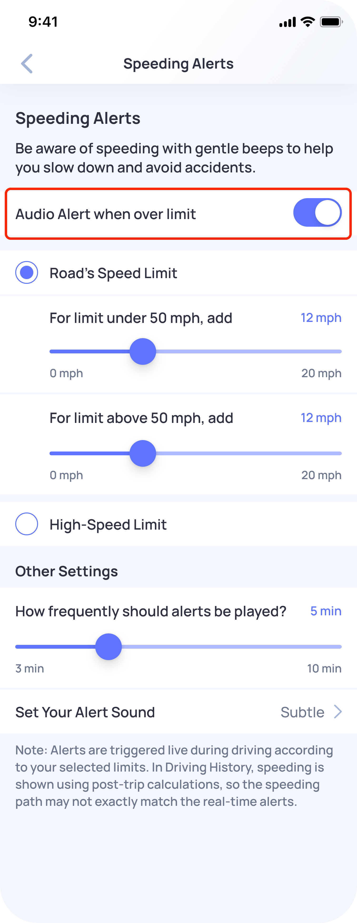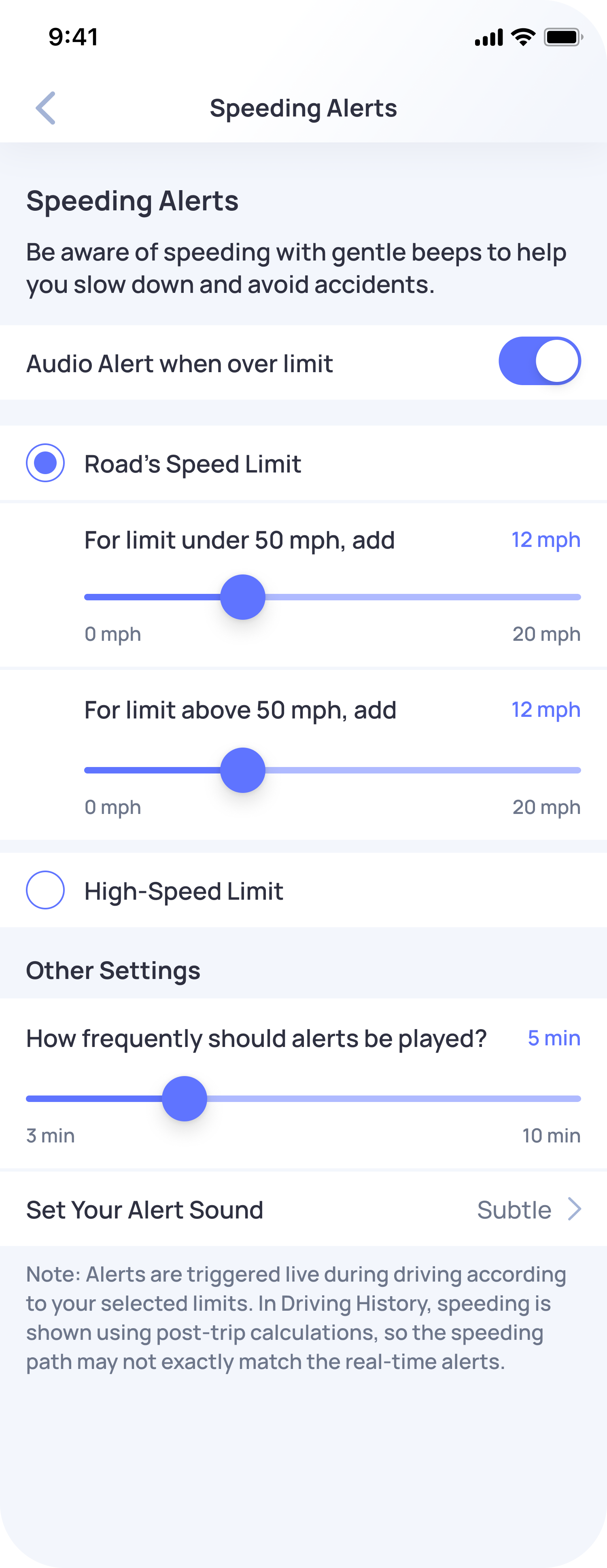 - Here, you can control the speed thresholds and the rate at which you receive the speeding beeps.