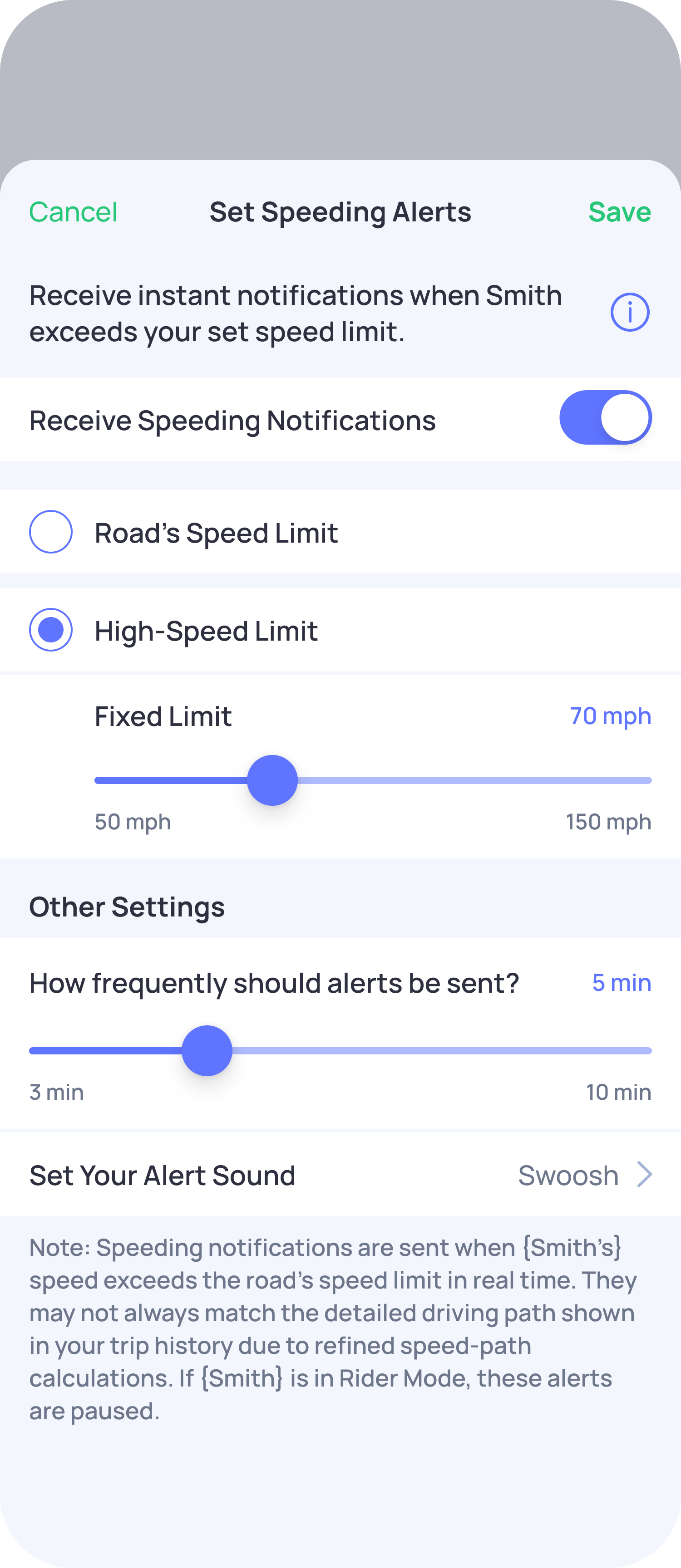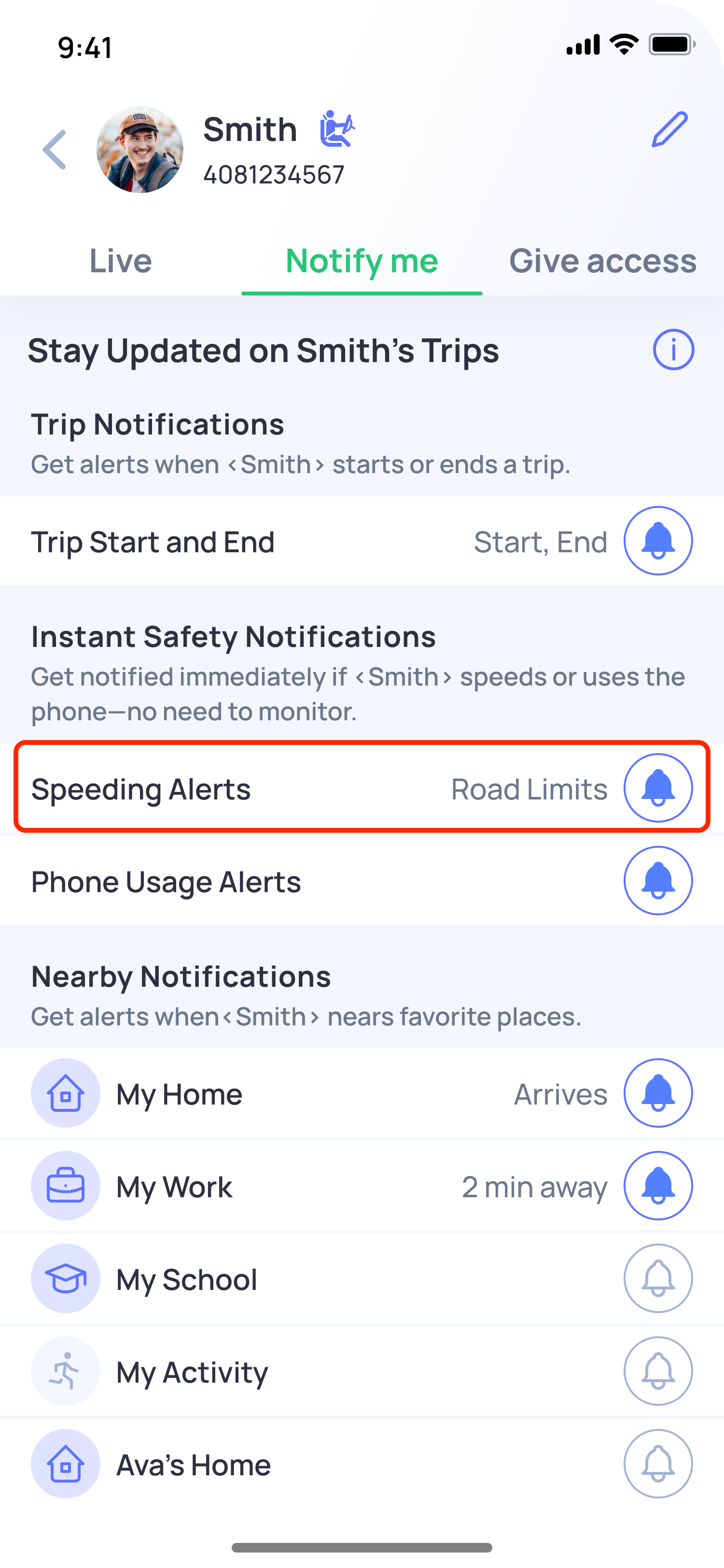 - Select Speeding Alerts and turn OFF the toggle button.