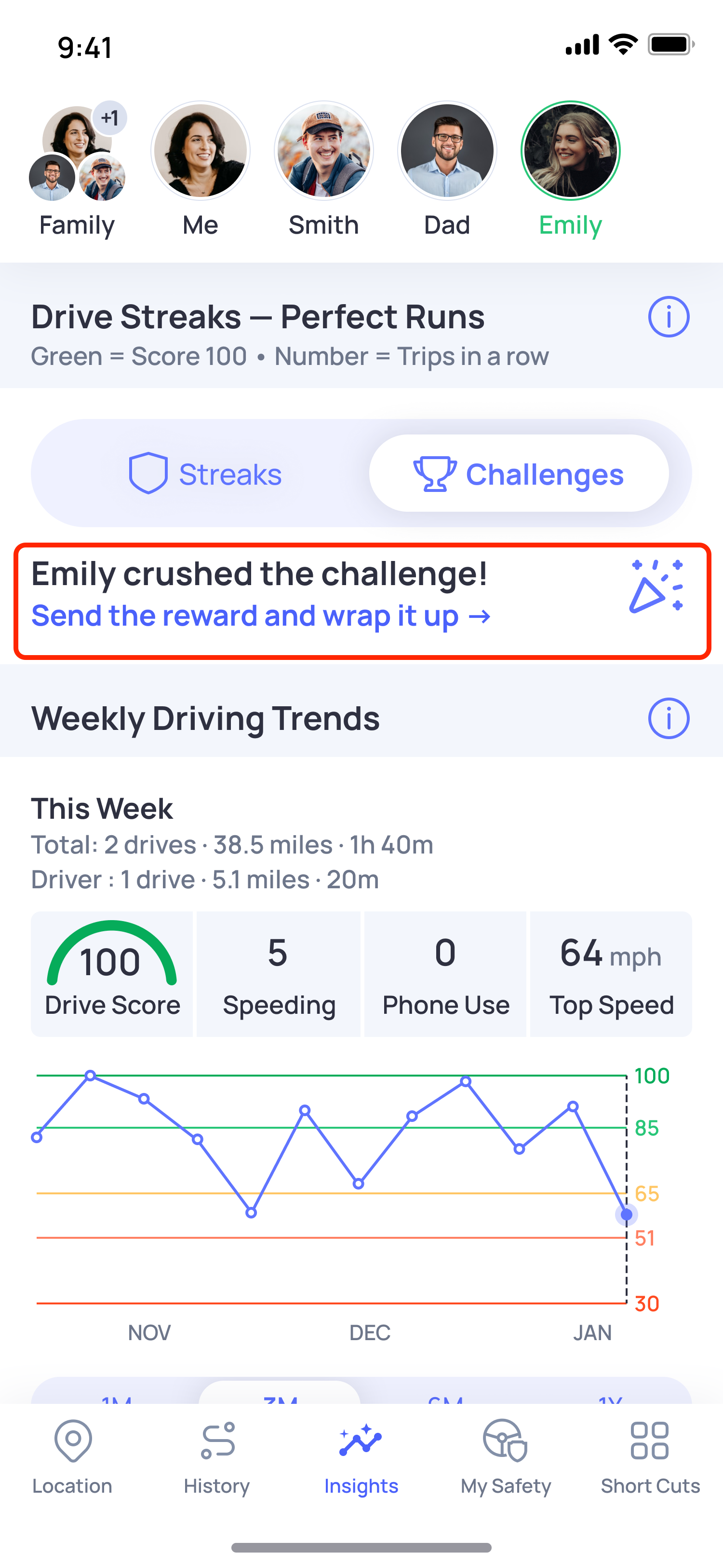 Challenge Streaks make safe driving fun and motivating by turning it into a friendly competition with your family and friends on OtoZen. Think of it as a game where the goal is to complete a series of perfect trips in a row—and the reward is safer habits.